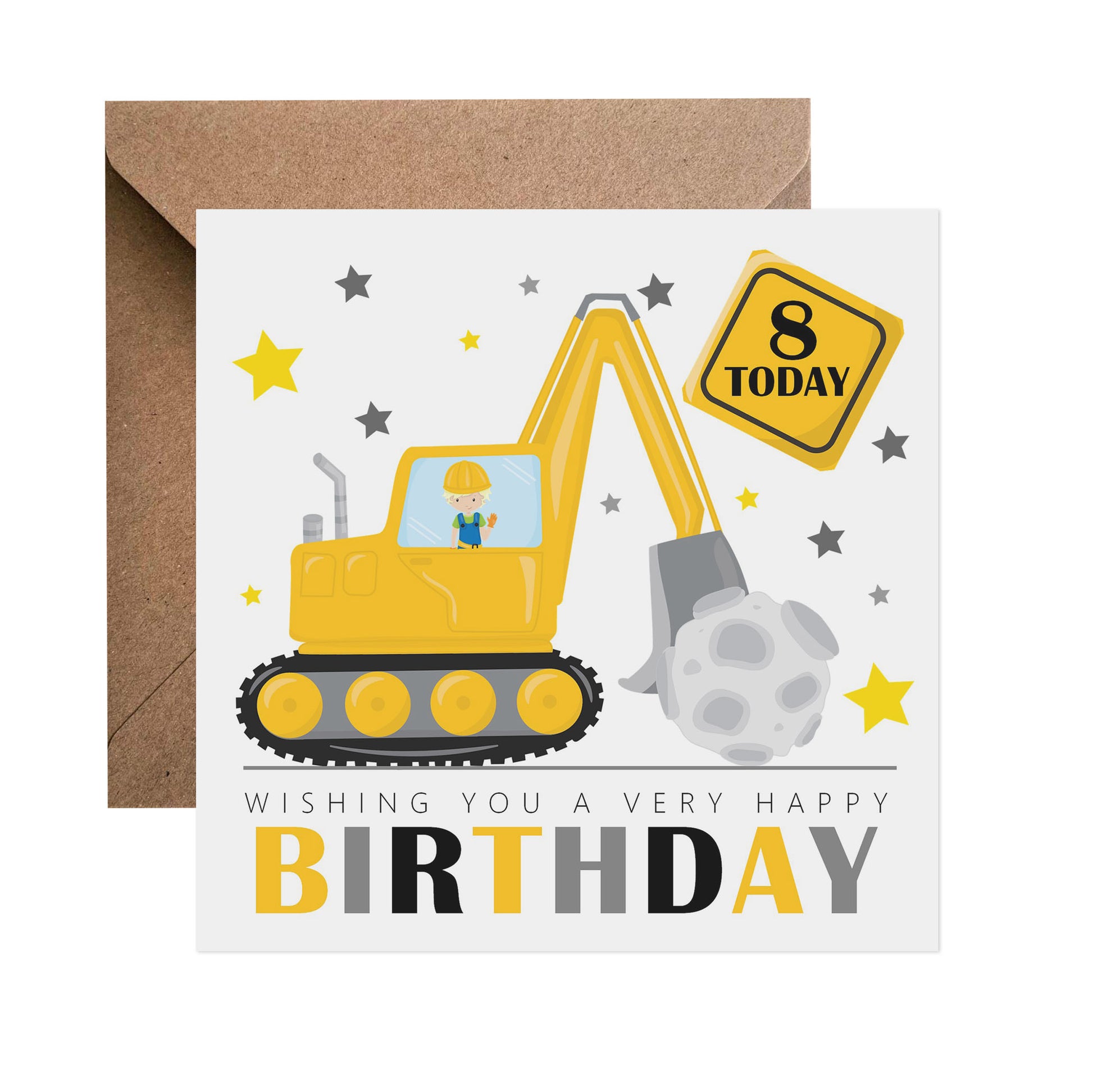 8th Birthday Card - Builder & Digger